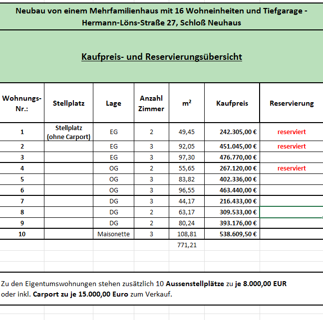 - Parken: Eigene PKW-Stellplätze (optional mit Vorbereitung für E-Ladestationen) direkt am Objekt.