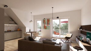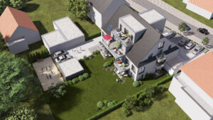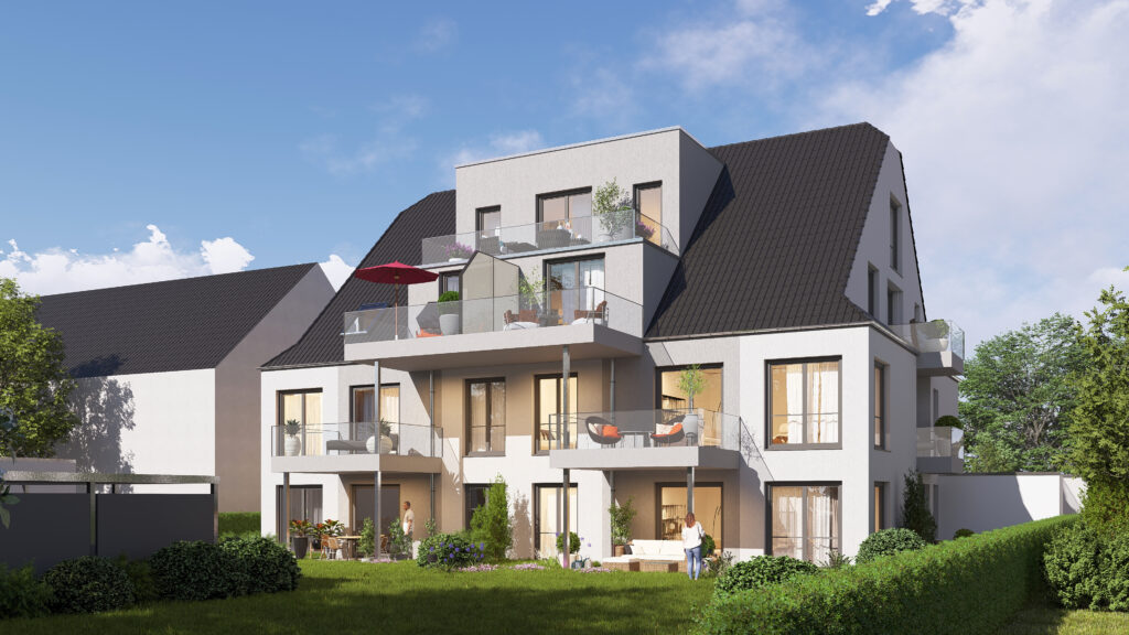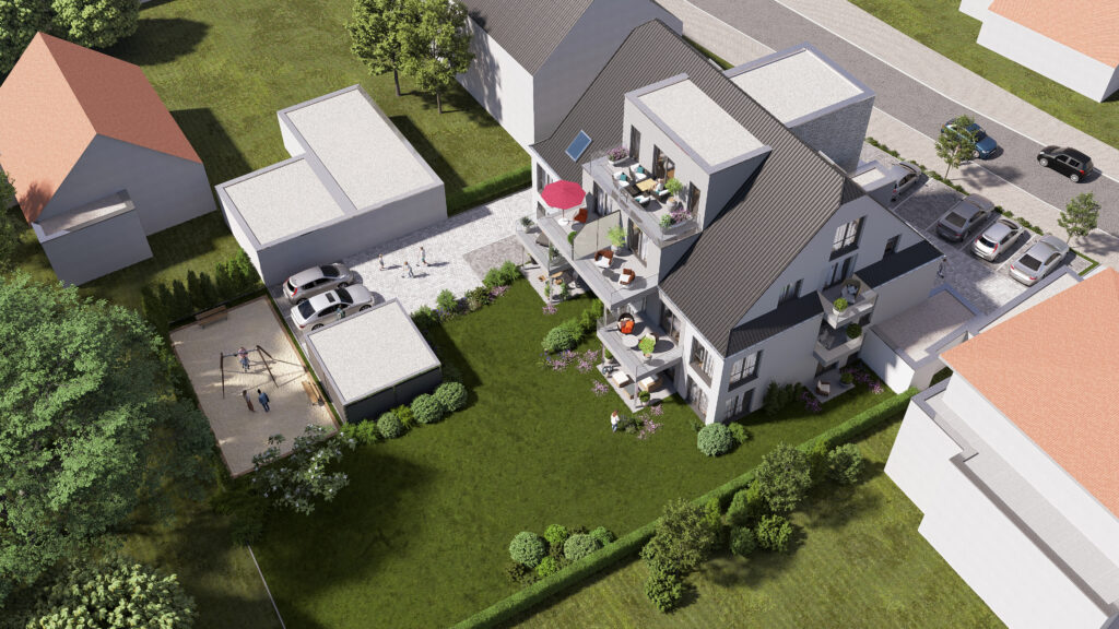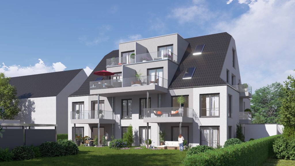 - Außenbereich: Jede Wohnung verfügt über eine großzügige Terrasse mit Gartenanteil, einen Balkon oder eine Dachterrasse.
