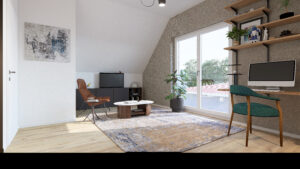 - Heizsystem: Nachhaltige Luft-Wasser-Wärmepumpe in Kombination mit einer einzeln regulierbaren Fußbodenheizung.