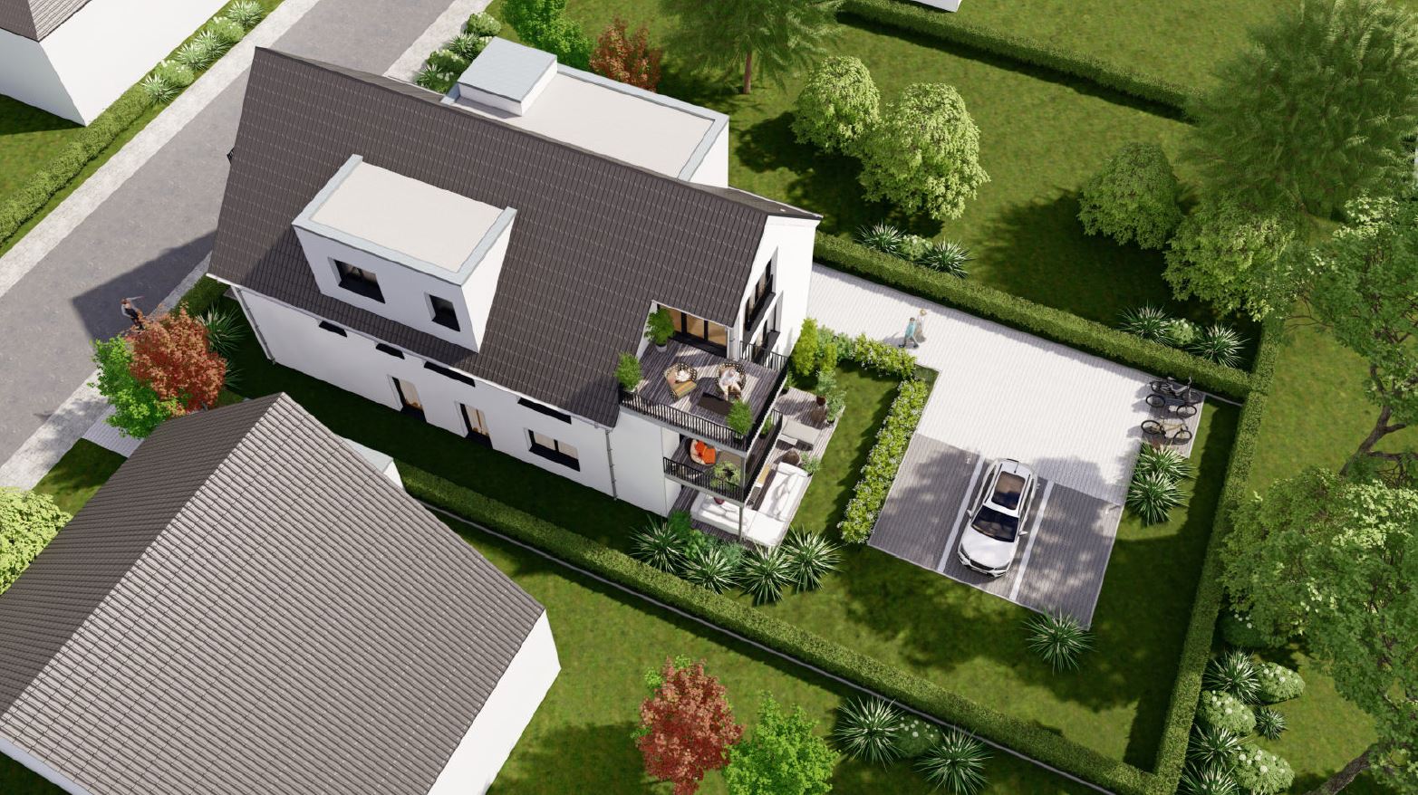 Neubau eines Mehrfamilienhauses mit vier Eigentumswohnungen und rund 348 m² Wohnfläche.